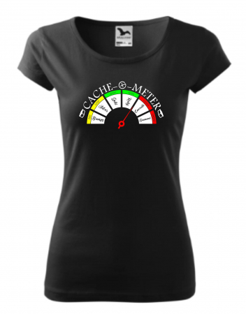 Cache-O-Meter - geocachingové dámské tričko s krátkým rukávem a nastavitelnou ručičkou na počet nalezených keší