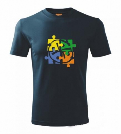 Originální tričko pro všechny milovníky geocachingu. Motiv ve tvaru 4 kousků puzzle se znakem geocachingu uprostřed. Barva trička pro pánský střih je navy (tmavě modrá) Kvalitní tričko vysoké gramáže, kulatý průkrčník s 5 % elastanu. Vynikající kvalita materiálu a šití. Všechny švy zdvojeny. Zpevňující ramenní páska. Tkaná etiketa. Trup je po stranách beze švů. Specifikace: 100 % bavlna, Single Jersey, 200 g/m2
